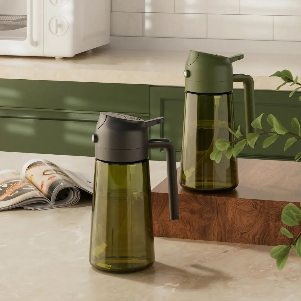 | Vielseitiges 2-in-1-Design | Dieser 2-in-1-Ölsprüher und Olivenölspender aus Glas ist sowohl zum Sprühen als auch zum Ausgießen geeignet und eignet sich perfekt zum Anrichten von Salaten, Grillen und für andere Küchenarbeiten. Einfaches Sprühen und Ausgießen von Öl. |