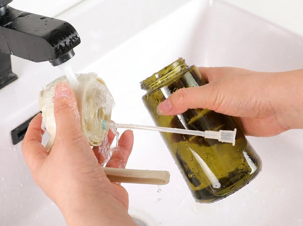 Wash with mild detergent and rinse with warm water. Pump the trigger several times to flush out any remaining water, then allow it to air dry before reassembling. This helps maintain the efficiency of your olive oil sprayer for cooking.