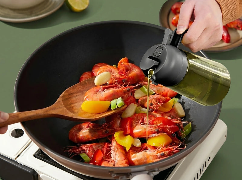 A quick press will produce a fine mist, while a slow press will create a stream. For optimal performance when using your 2 in 1 glass oil sprayer and dispenser for the first time, pump the trigger several times to remove any air.