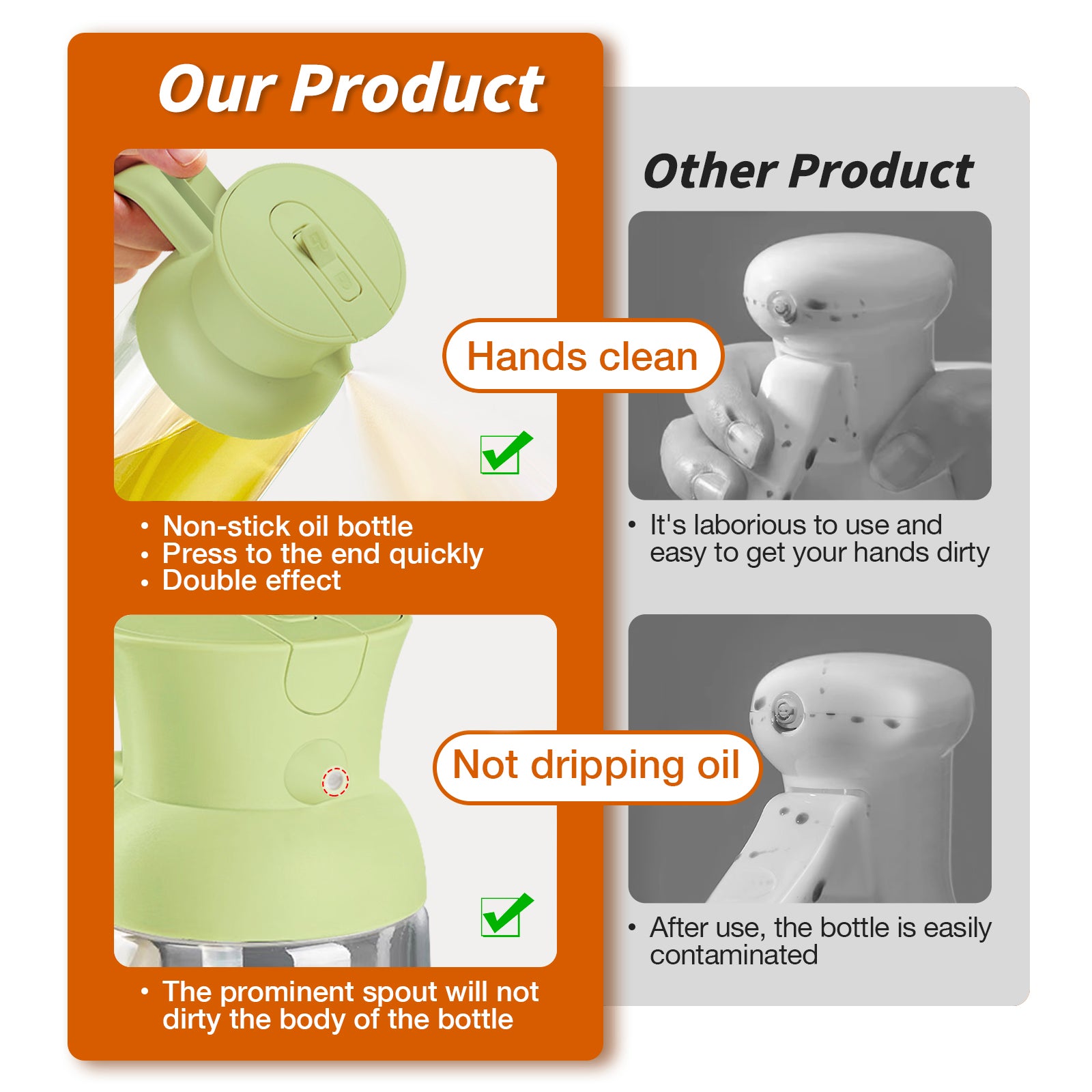 🙌 Mess-Free Design: A front-facing nozzle and ergonomic rear handle deliver a fine mist or controlled pour—keeping hands clean and ensuring a seamless cooking experience.